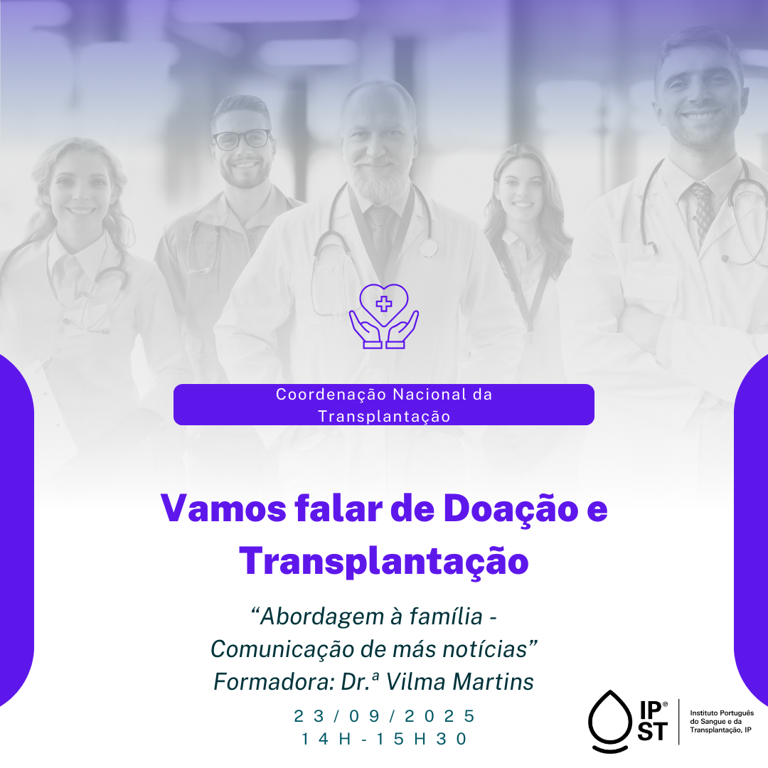 A Coordenação Nacional da Transplantação, ao longo de 2025, promove «Ciclos de Formação em Doação e Transplantação», são formações dedicadas aos temas mais relevantes e atuais desta área da Doação e da Transplantação.