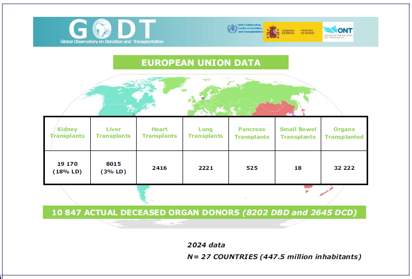 O Instituto Português do Sangue e da Transplantação, através da Coordenação Nacional de Transplantação, reporta anualmente a atividade nacional de doação e transplantação de órgãos para diversas entidades internacionais entre as quais a Organización Nacional de Trasplantes (ONT), sediada em Espanha, a qual coordena a publicação anual da Newsletter Transplant. Esta importante publicação reúne os dados internacionais sobre a referida atividade, através da análise dos dados reportados pelos diversos pontos focais, estando Portugal incluído nesta rede.